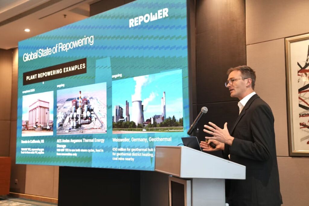 Chinese experts presented real-world repowering projects, from a molten salt thermal storage plant in Suzhou to coal-to-nuclear transition models in coastal provinces. Speakers from CHN Energy, CEEC, Xiamen University, and others outlined scalable paths for “退而不废” (retreating without abandoning) coal assets.