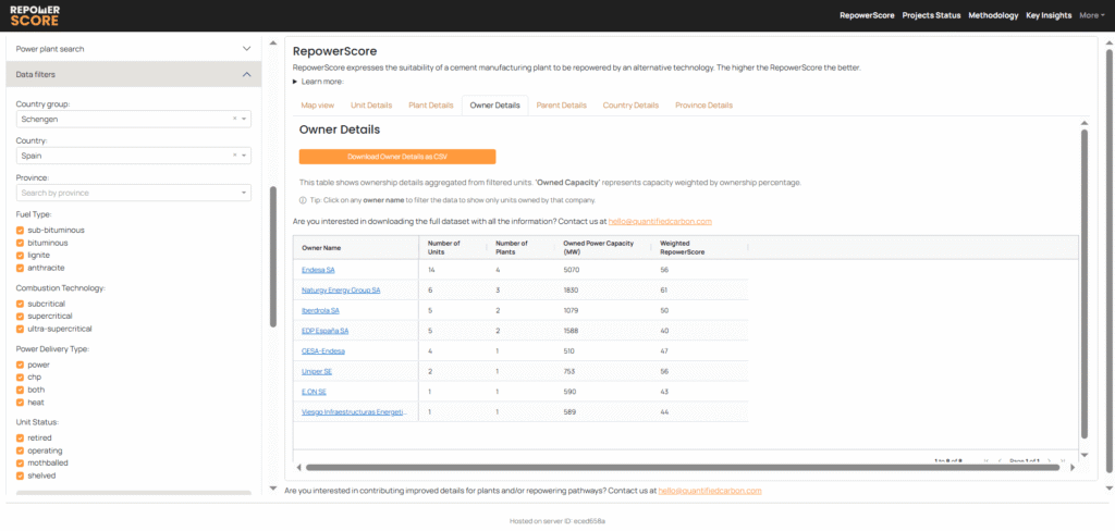 RepowerScore now includes improved search functionality, allowing users to quickly find coal plants, plant owners and parent companies across the dataset.