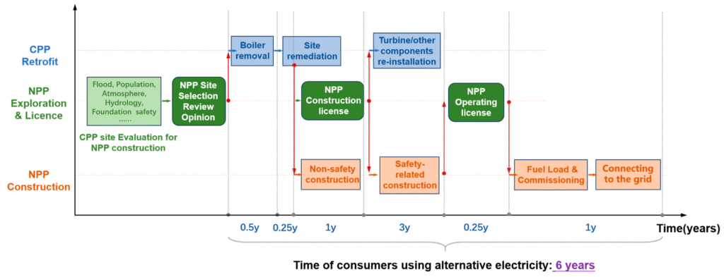 A full C2N retrofit, including safety reassessment and demolition of the old coal systems, is estimated to take six years — comparable to a standard nuclear plant build.